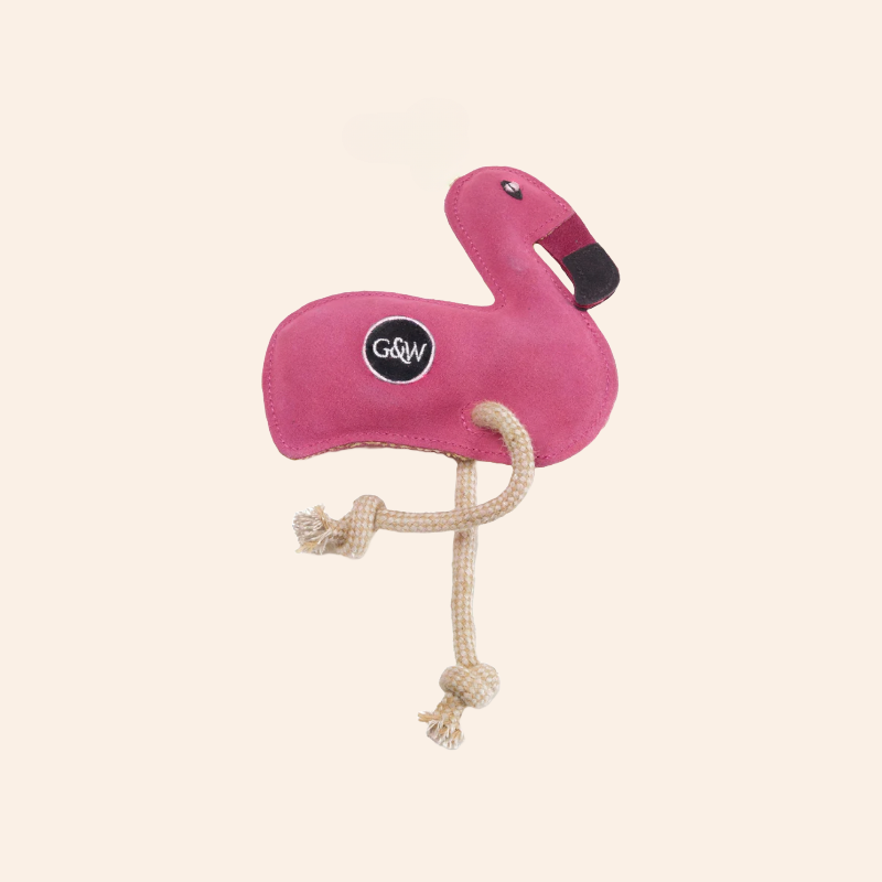 Made from a suede outer with natural jute fibre stuffing. Tough and long lasting, made without using any compound that would harm or be released when chewed.