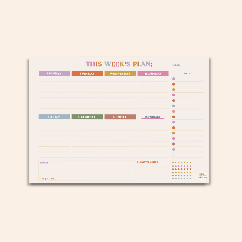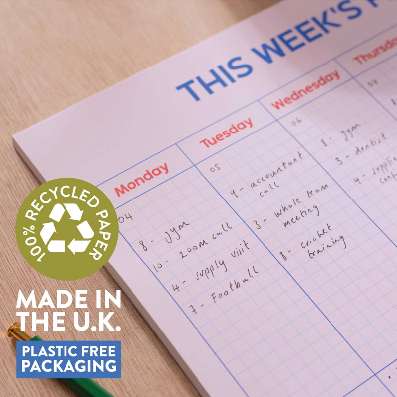 A simple weekly planner pad to help with organisation - a perfect addition for your office or home.