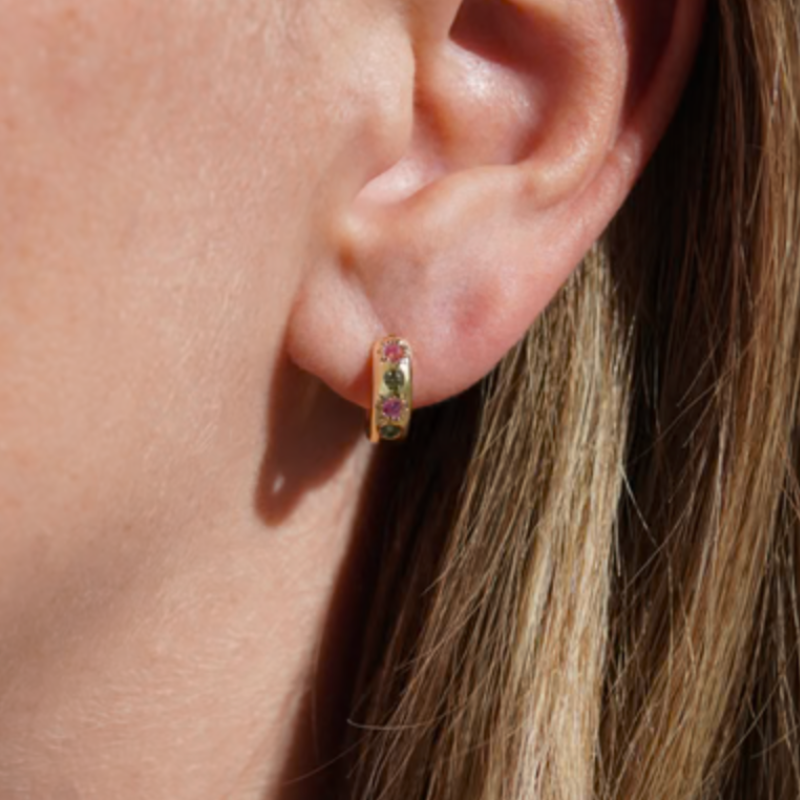 There’s no sugar-coating needed for these embellished beauties. The chubby hoops are encrusted with pink and green gemstones like coloured candies. The petite sizing of these hoops makes them a perfect new addition to your ear stack. Stack them high or wear them alone, either way, they’ll be the icing on the cake.