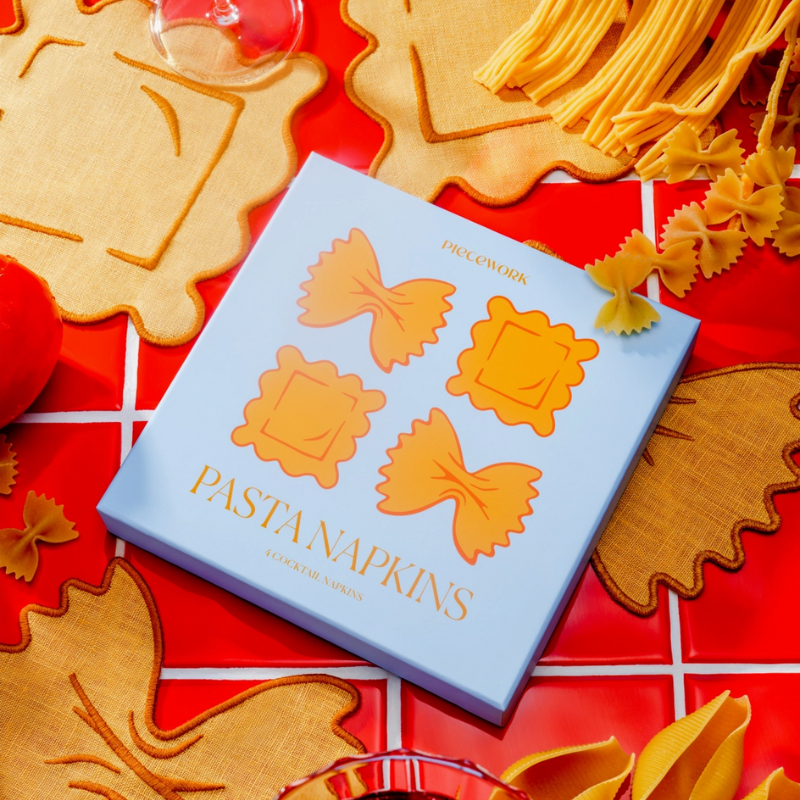 A saucy selection of four 100% linen pasta-shaped napkins.