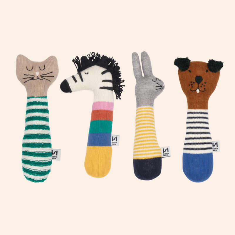 These cotton rattles are a wonderful first baby toy, designed to engage and soothe babies and toddlers, with early sensory development in mind. These gorgeous rattles feature a lightweight handle that's easy for tiny hands to grasp.